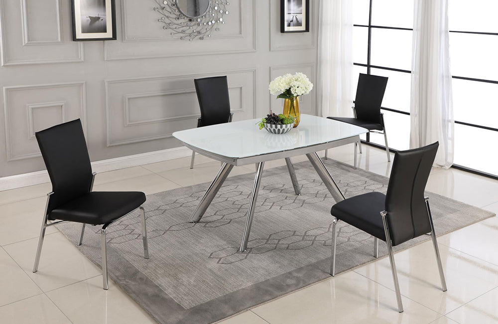 - Detail Description: Contemporary Dining Set w/ Extendable Starphire Glass Table & 4 Motion Back Side Chairs