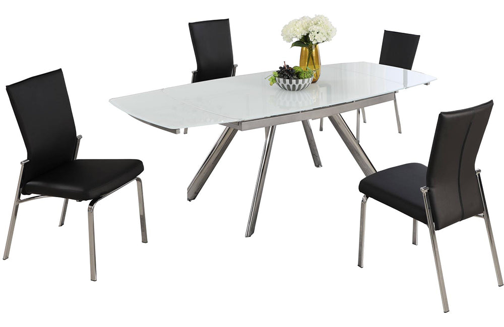 Contemporary Dining Set w/ Extendable Starphire Glass Table & 4 Motion Back Side Chairs.