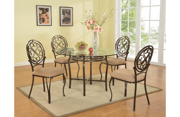 Allecra dining 5 piece set - clear glass table with 4 taupe traditional style side chairs