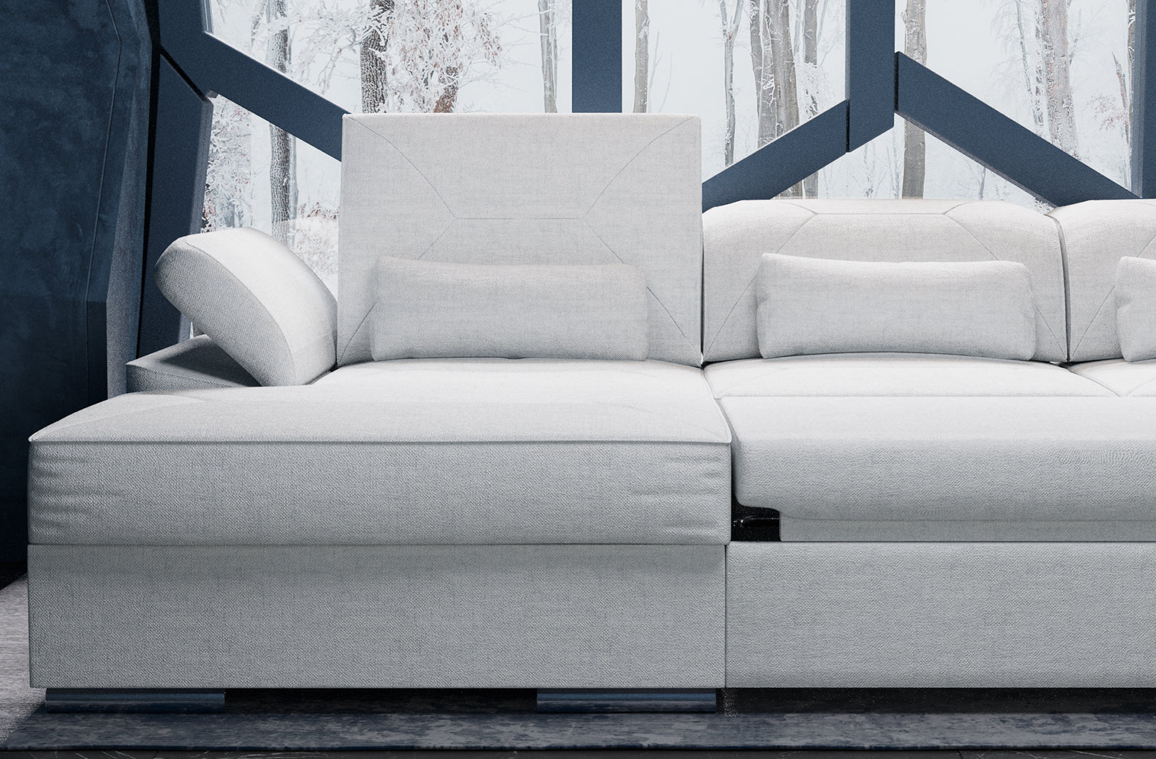 - Sofa bed, Storage, Adjustable Headrest, Armrest, Seating Depth