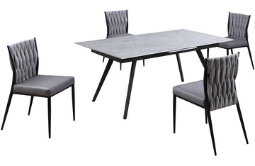 Contemporary Dining Set w/ Extendable Glass Table & Chairs.