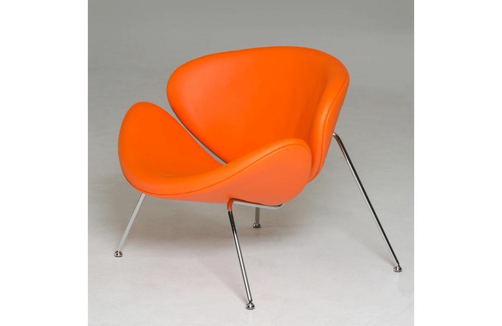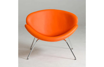 The Anais Contemporary Orange Leatherette Accent Chair features a semi-circular recessed design featuring orange leatherette upholstery with durable stainless steel legs.This accent chair is a definitely an attention-getter. Available also in Gray, Green and White colors.
