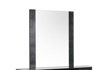 The Ancona Italian Modern Black Mirror features a wide beige high gloss and crocodile textured finish frame with silver reflective accents. The Mirror can be ordered with the Dresser.