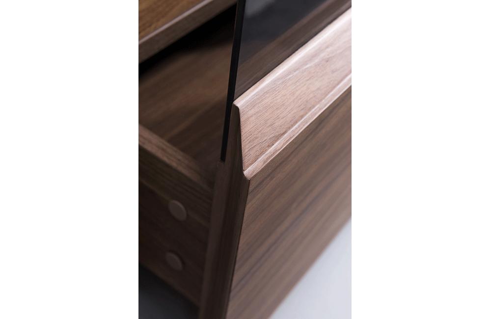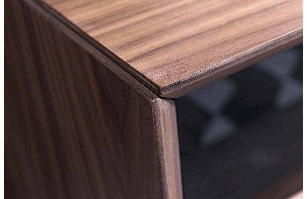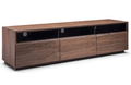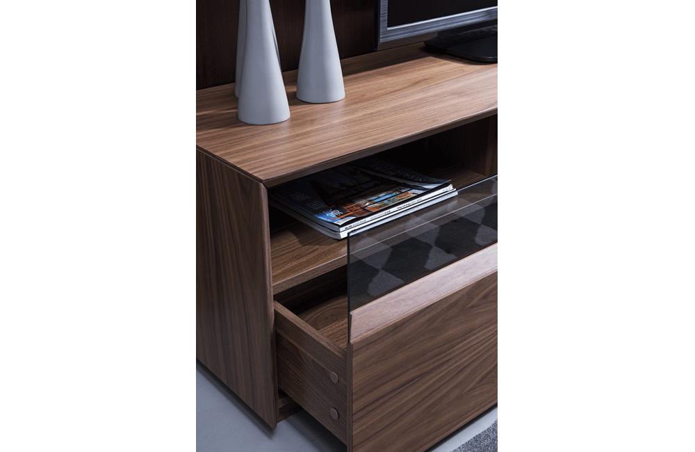 Contemporary TV stand crafted in Warm Walnut Veneer.