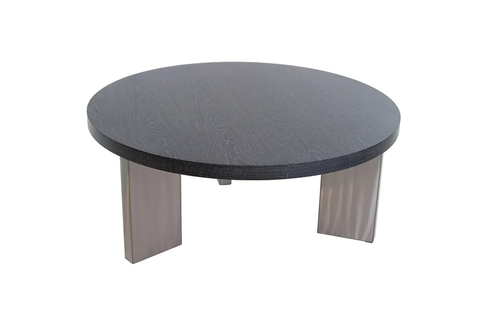 The Arcadia Round Cocktail Table with Wood Top is a basic, beautiful table with a wooden top displayed in midnight oak and a Platinum Finish that makes a powerful classic style with simplicity and elegance. The fashionable design will look great in your home.