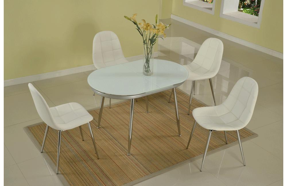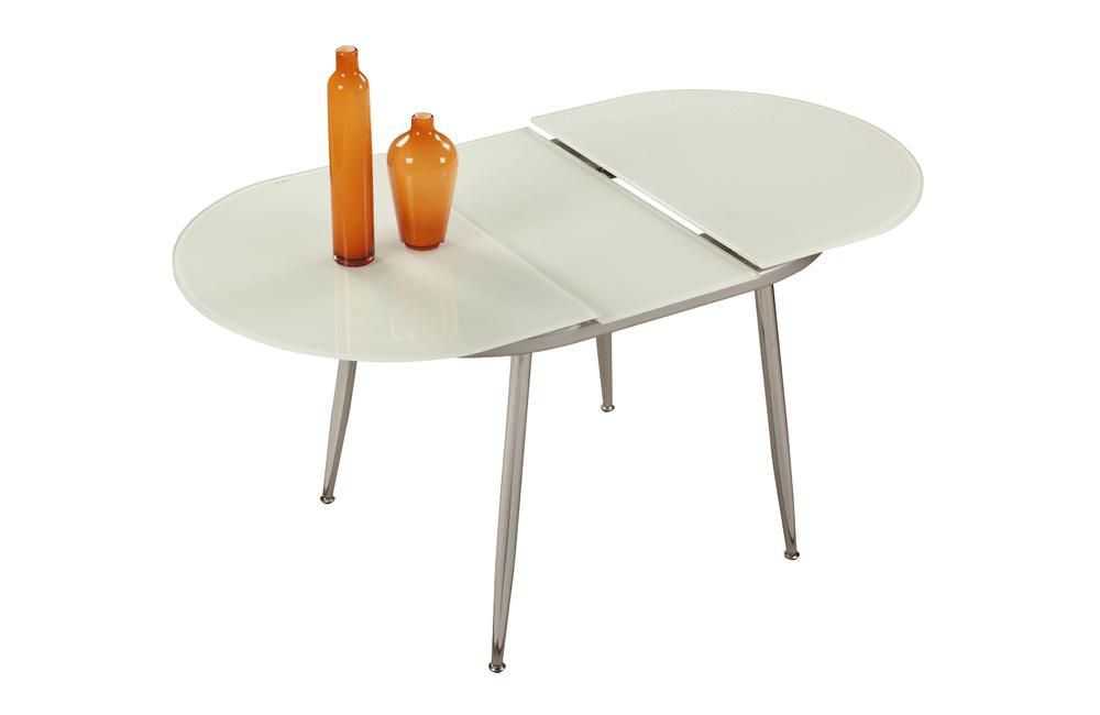 Extension dinning table,10 mm ultra-white tempered glass, silver power coating frame,chrome legs.