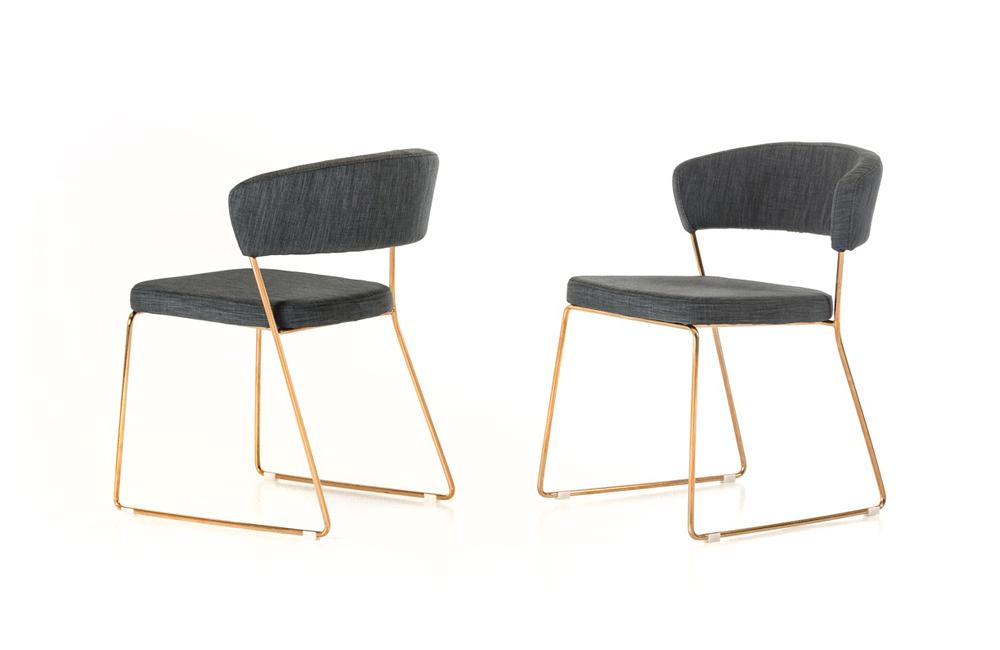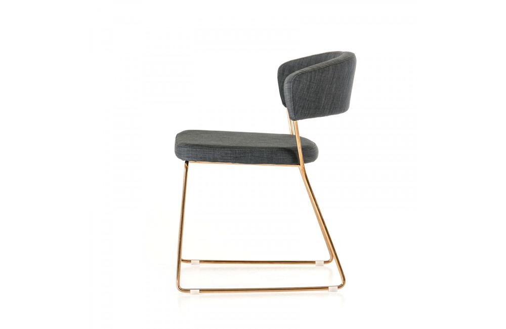 Ashland Modern Gray & Rose gold Dining Chair boasts of simple elegance featuring grey fabric upholstery and framed in polished stainless steel with Rose gold finish. It is accentuated with gray color stitching.