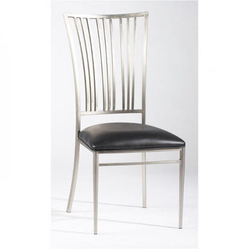 Fan back brushed nickel side chair with Black PVC cushioned seat
