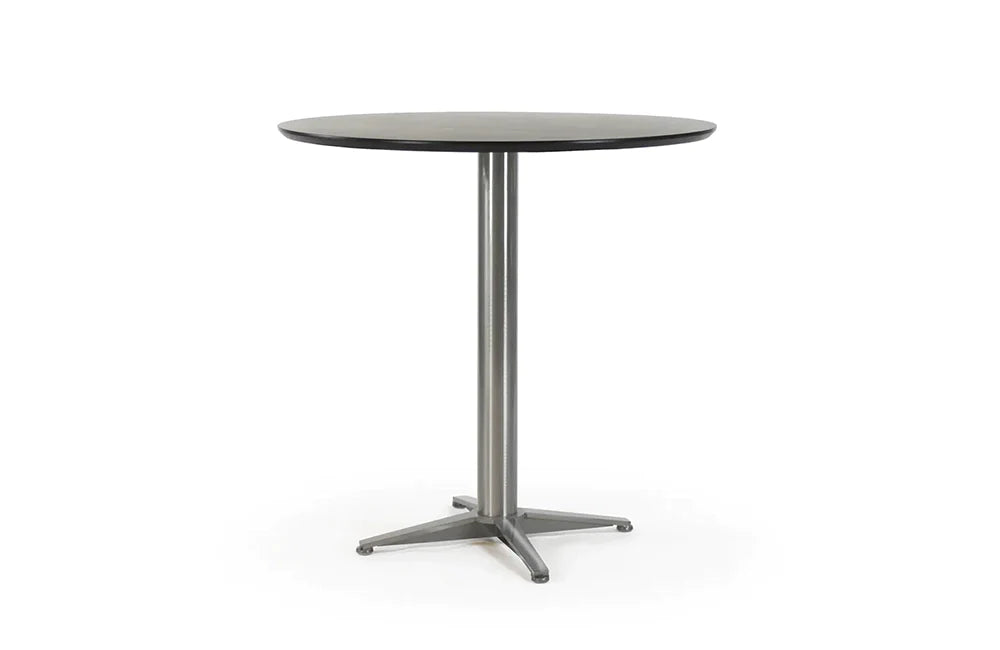 Shown in Platinum Finish with WV42, 42 in. round wood tabletop with 3/4 in. thickness in Ebony Oak finish