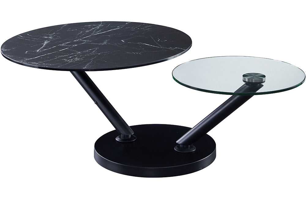 The Austin Modern Coffee Table by Paramus Furniture is the newest addition to our occasional table collection. This coffee table is designed to be compact yet accommodating, with it's all new transforming feature. The ultra modern design allows for a hidden glass top to unfold from underneath the black ceramic Sahara Noir design, increasing the useable surface area by over fifty percent, all while maintaining a minimalistic footprint.