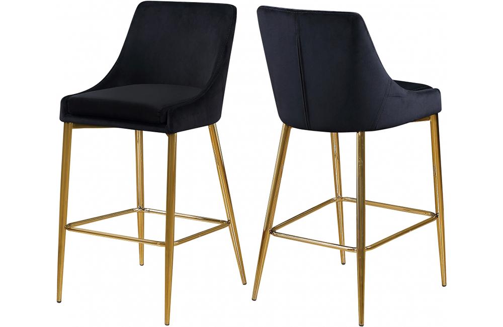 Yield to your contemporary side with this Babita Velvet Stool. This modern stool is counter height, making it an ideal addition to a home bar or eat-in kitchen counter. The pink velvet upholstery brings a neutral element to your room, so it can easily meld with other furnishings. Plump seat and back cushions ensure that guests sit comfortably, whether they're enjoying a sudsy brew or a stack of pancakes. The polished gold metal frame is sturdy and stout, adding a durable slant to this lovely stool.