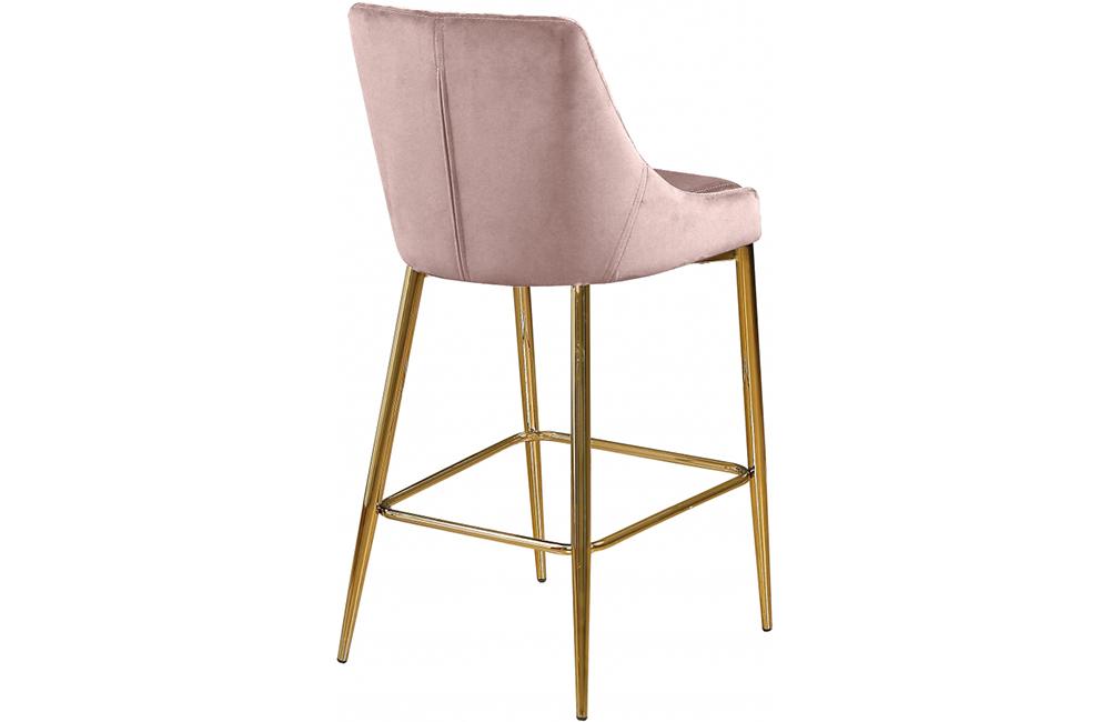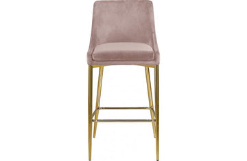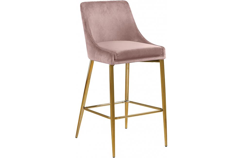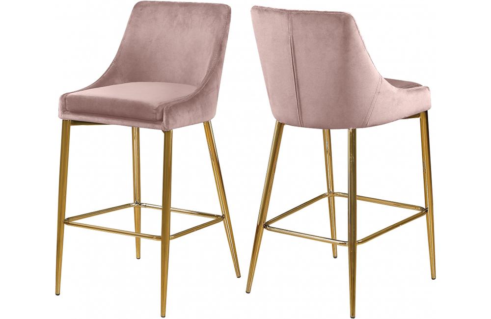 Yield to your contemporary side with this Babita Velvet Stool. This modern stool is counter height, making it an ideal addition to a home bar or eat-in kitchen counter. The pink velvet upholstery brings a neutral element to your room, so it can easily meld with other furnishings. Plump seat and back cushions ensure that guests sit comfortably, whether they're enjoying a sudsy brew or a stack of pancakes. The polished gold metal frame is sturdy and stout, adding a durable slant to this lovely stool.