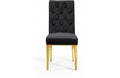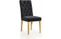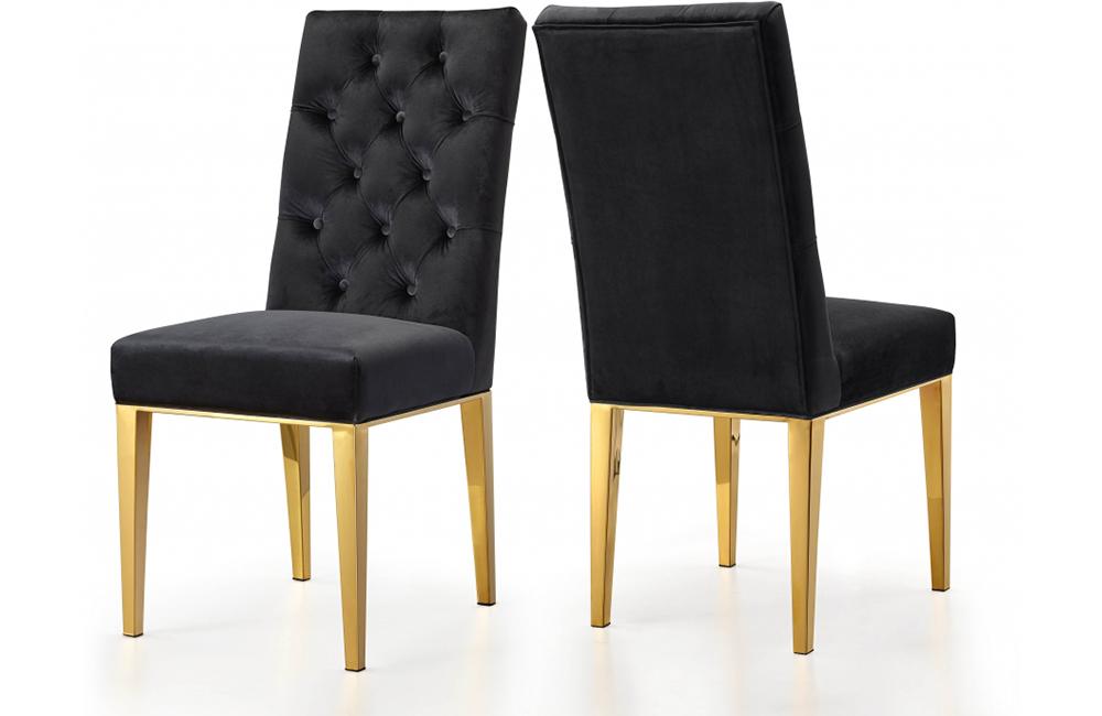 Turn to these Babson Black velvet dining chairs for a modern look in your contemporary dining space. This chair features a classic parsons design with a slightly slanted back that's button tufted to give it a textural look. The legs are made from stainless steel to give them strength and added support as you sit, and they're finished in a rich gold tone hue for a regal and sophisticated look.