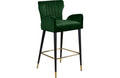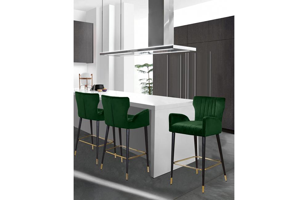 Inject beautiful color into your counter or home bar area with the Bacchus Velvet Stool. Flared sides and a semi-high back provide support while you sit, so you stay comfortable for the whole meal. Channel tufting on the seat and back adds a dimensional effect while helping the padded cushions keep their loft and form. The metal legs are given a black finish for a contemporary look and goldtone hardware tips for a regal finish.