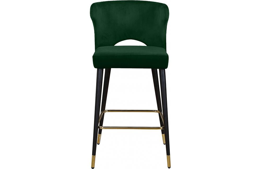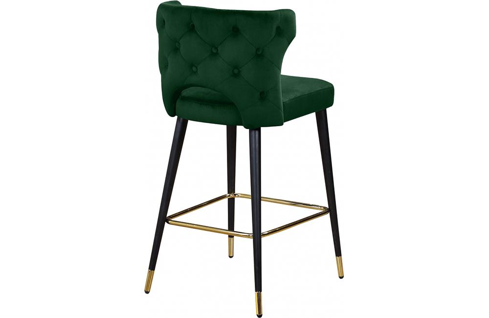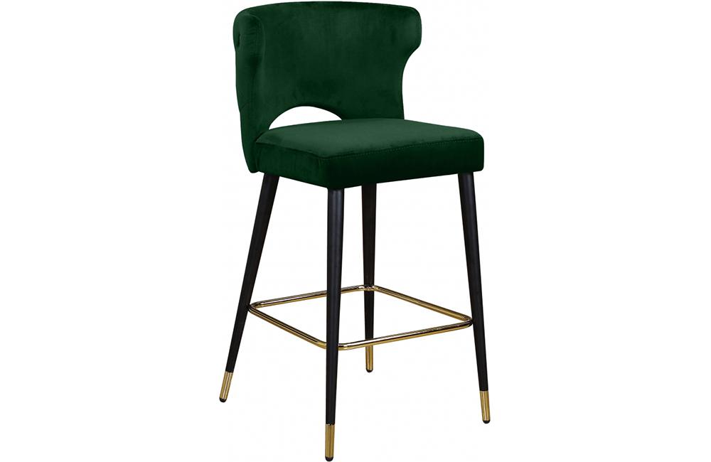 Sit comfortably on this Bahati Velvet Stool. The back and seat cushions are plumply stuffed for enhanced comfort and covered in rich velvet upholstery to give your room a burst of color and jewel-toned fun. This stool has black metal legs with gold tips for added contemporary panache, and it's built strong and tough, so it stands up to heavy daily use without breaking a sweat. These stools can outfit any bar or kitchen counter area.