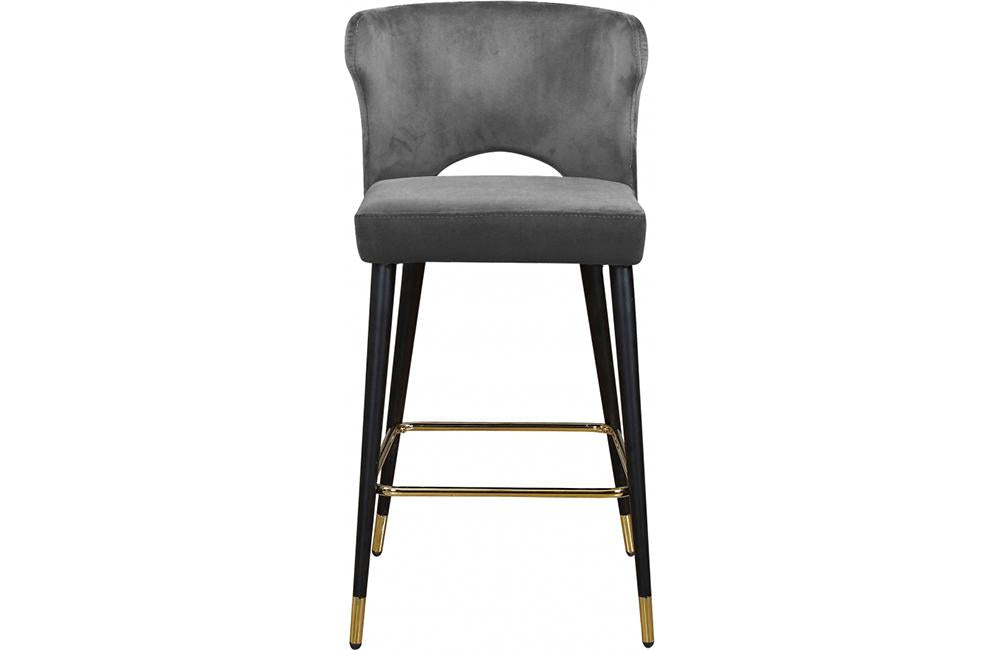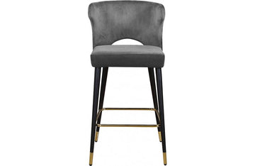 Sit comfortably on this Bahati Velvet Stool. The back and seat cushions are plumply stuffed for enhanced comfort and covered in rich velvet upholstery to give your room a burst of color and jewel-toned fun. This stool has black metal legs with gold tips for added contemporary panache, and it's built strong and tough, so it stands up to heavy daily use without breaking a sweat. These stools can outfit any bar or kitchen counter area.