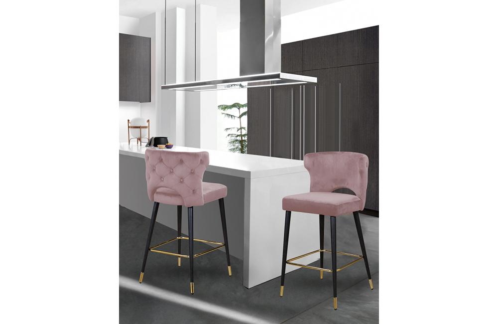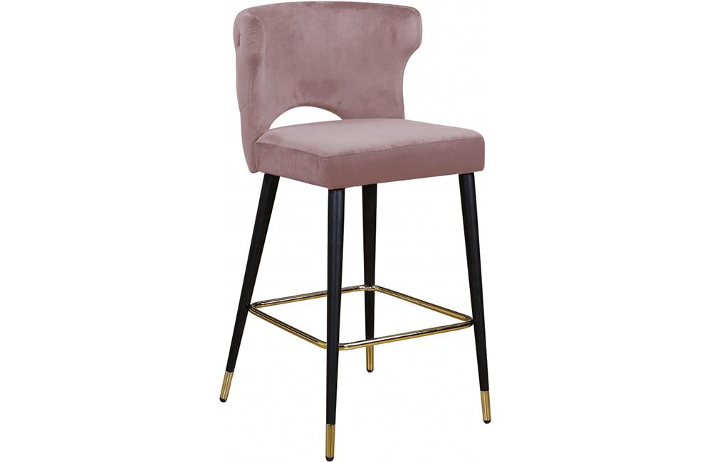 Sit comfortably on this Bahati Velvet Stool. The back and seat cushions are plumply stuffed for enhanced comfort and covered in rich velvet upholstery to give your room a burst of color and jewel-toned fun. This stool has black metal legs with gold tips for added contemporary panache, and it's built strong and tough, so it stands up to heavy daily use without breaking a sweat. These stools can outfit any bar or kitchen counter area.