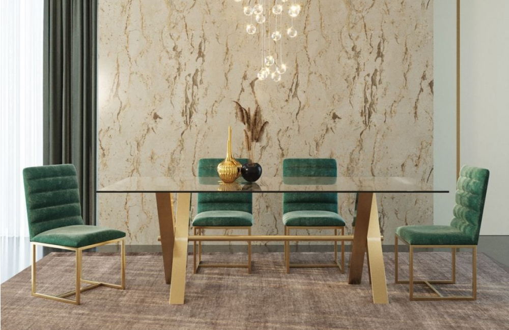 Bakersfield - Modern Green & Brush Gold Dining Chair (Set of 2)