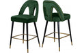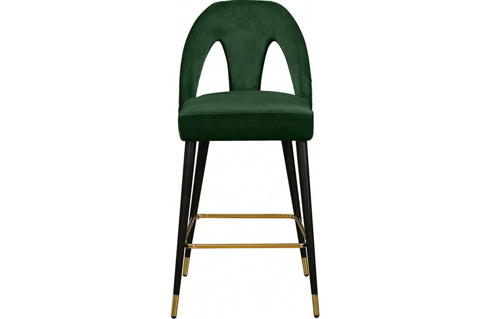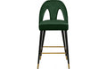 Modern and traditional elements collide in the design of this Balbina Velvet Stool. Velvet upholstery covers the back and seat, giving it a decidedly glamorous look while two strategic cutouts provide just a hint of bold, modish fun. The gold nailhead trim on the back adds an edgy vibe, and metal legs in a black finish with goldtone tips rounds out the stool, providing sturdy support and a contemporary look.
