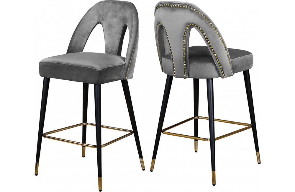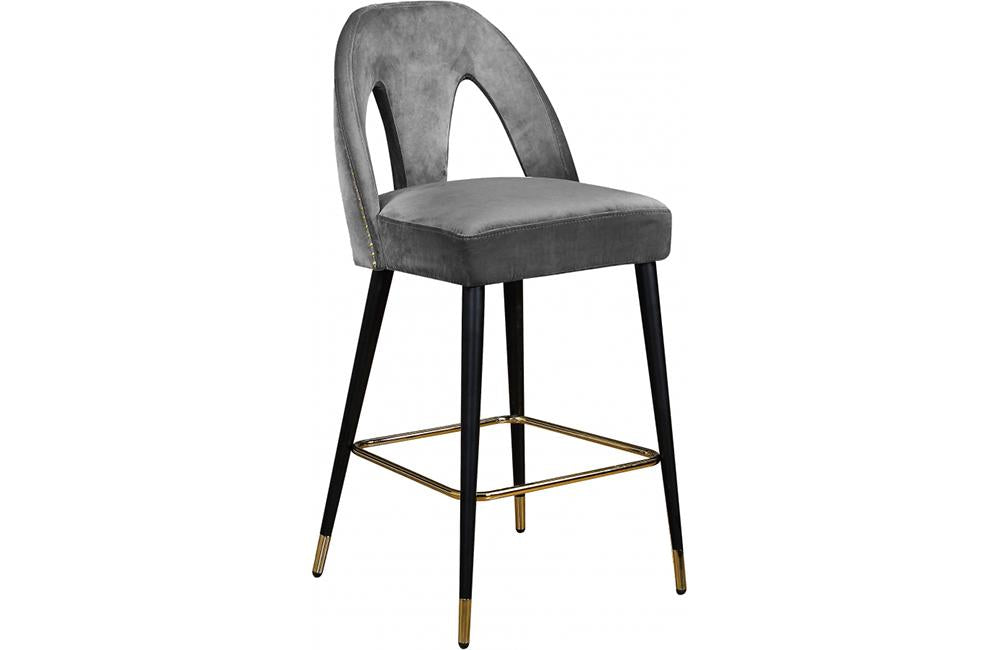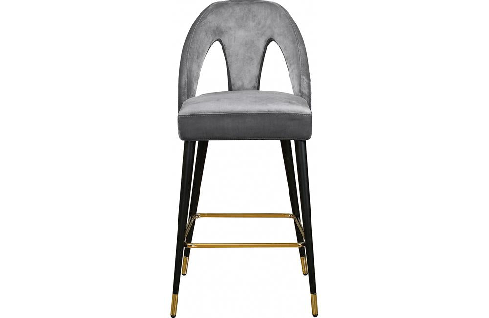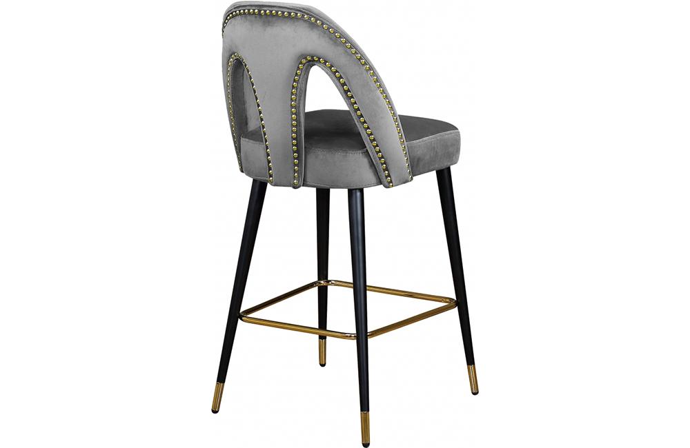 Modern and traditional elements collide in the design of this Balbina Velvet Stool. Velvet upholstery covers the back and seat, giving it a decidedly glamorous look while two strategic cutouts provide just a hint of bold, modish fun. The gold nailhead trim on the back adds an edgy vibe, and metal legs in a black finish with goldtone tips rounds out the stool, providing sturdy support and a contemporary look.