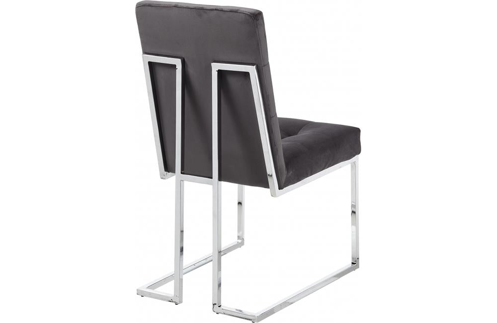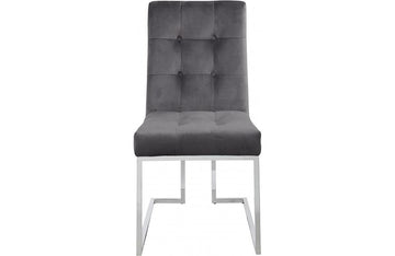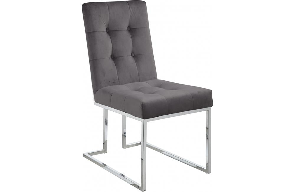 Dine in sophistication and elegance when you're seated in this Banner Grey velvet dining chair. This pretty chair has a modish look that's suitable for nearly any contemporary décor theme. The base is made from stainless steel and has been given a rich chrome finish that lends it added modern panache. The seat is thickly padded and welcoming to the body as you sit through mealtime and converse with family and friends. Plush navy velvet upholstery with tufting on the back and seat cushions finishes off the design on a svelte note.