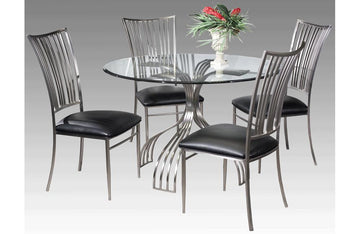 With a brushed steel base reminiscent of a spring flower only days from blooming, this dining table is a perfect match for people who prefer to celebrate their sense of fashion in the most modern mediums. The sturdy and circular glass top comes with a beveled edge.
