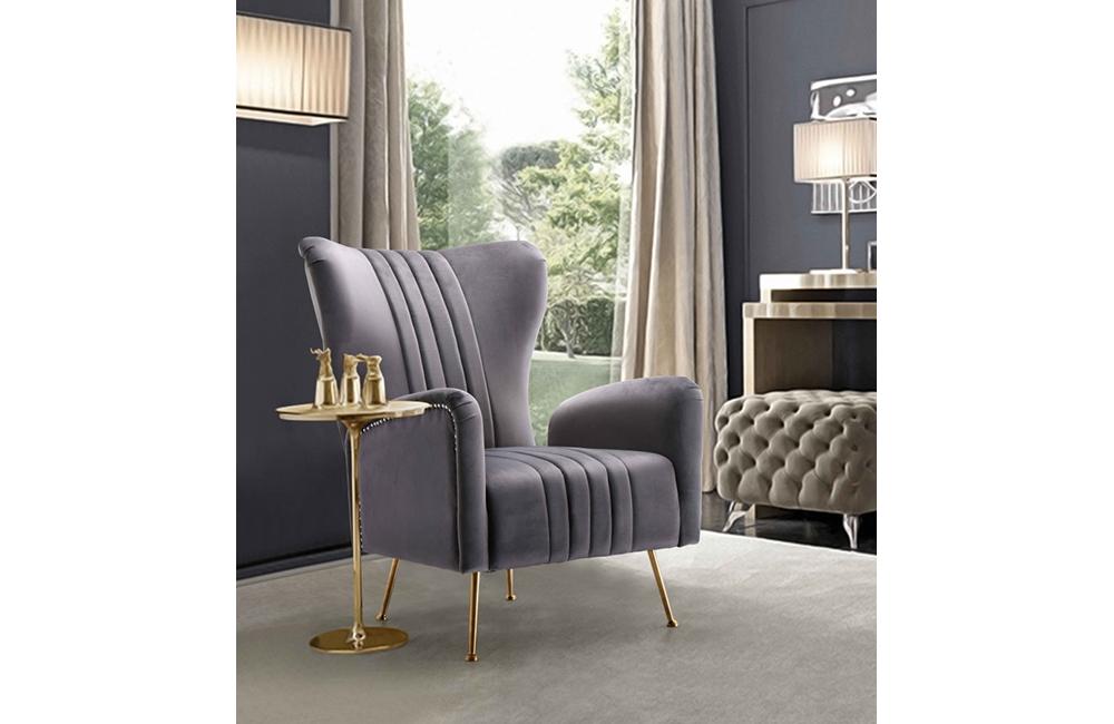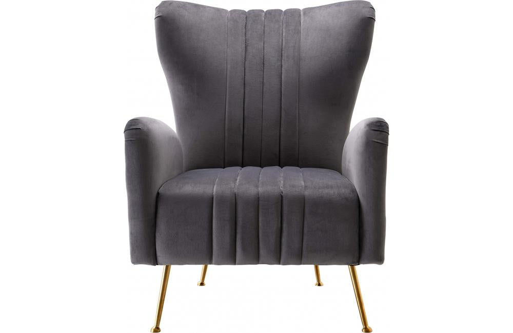 Inject contemporary finesse into your space with this pretty Bardolf velvet accent chair that puts a new twist on a classic design. This chair features a plush footprint with thickly padded back, seat, and arm cushions that cradle each part of your body, so you can relax and unwind at day's end. The legs are made from stainless steel for strength and durability and have a gold tone finish for a rich, elegant look. Horizontal tufting on the seat and back add to the distinctive look of this fabulous chair.