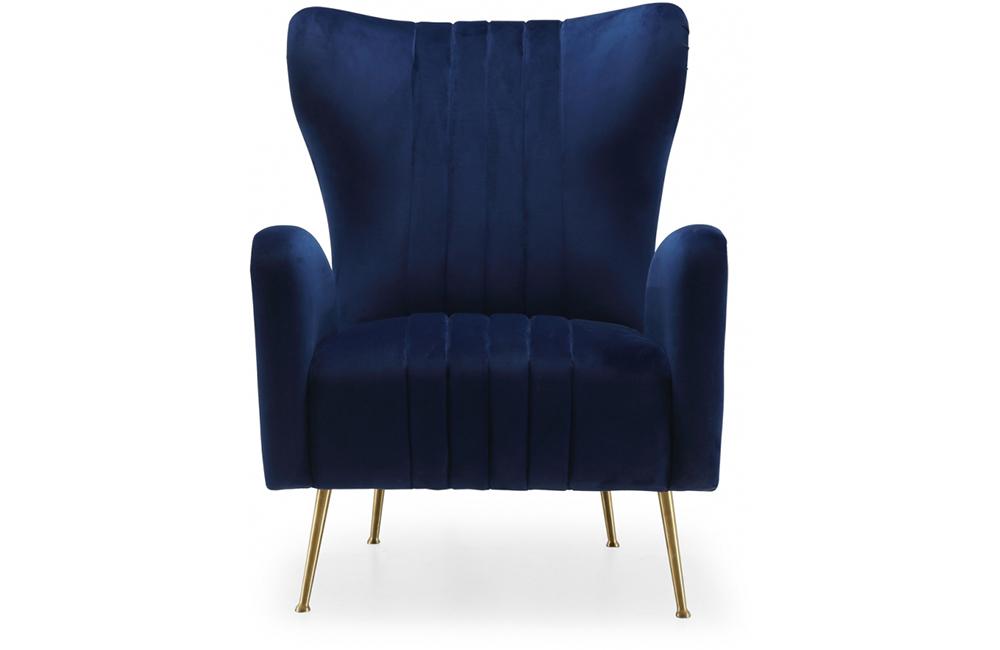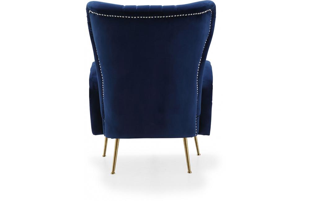 Inject contemporary finesse into your space with this pretty Bardolf navy velvet accent chair that puts a new twist on a classic design. This chair features a plush footprint with thickly padded back, seat, and arm cushions that cradle each part of your body, so you can relax and unwind at day's end. The legs are made from stainless steel for strength and durability and have a gold tone finish for a rich, elegant look. Horizontal tufting on the seat and back add to the distinctive look of this fabulous chair.