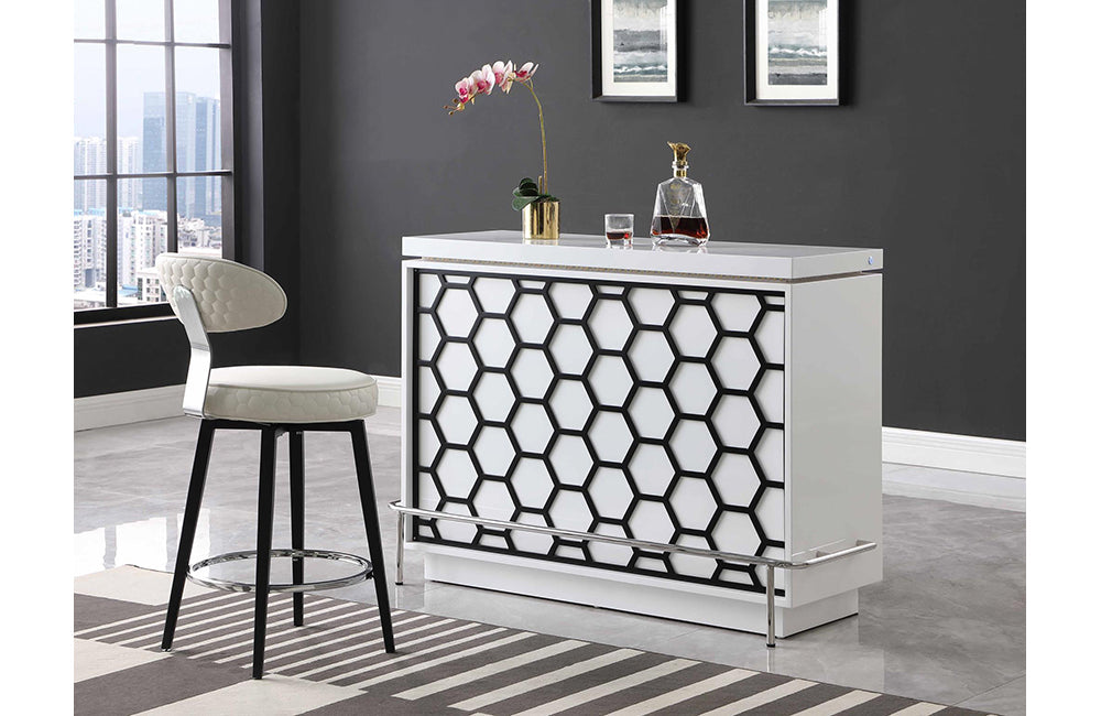 - Detail Description: Home Bar w/ Honeycomb Accent and Storage