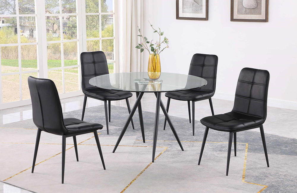 - Detail Description: Dining set w/ Glass Top Table & Tufted Back Side Chairs