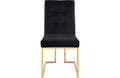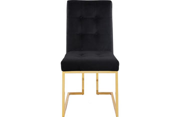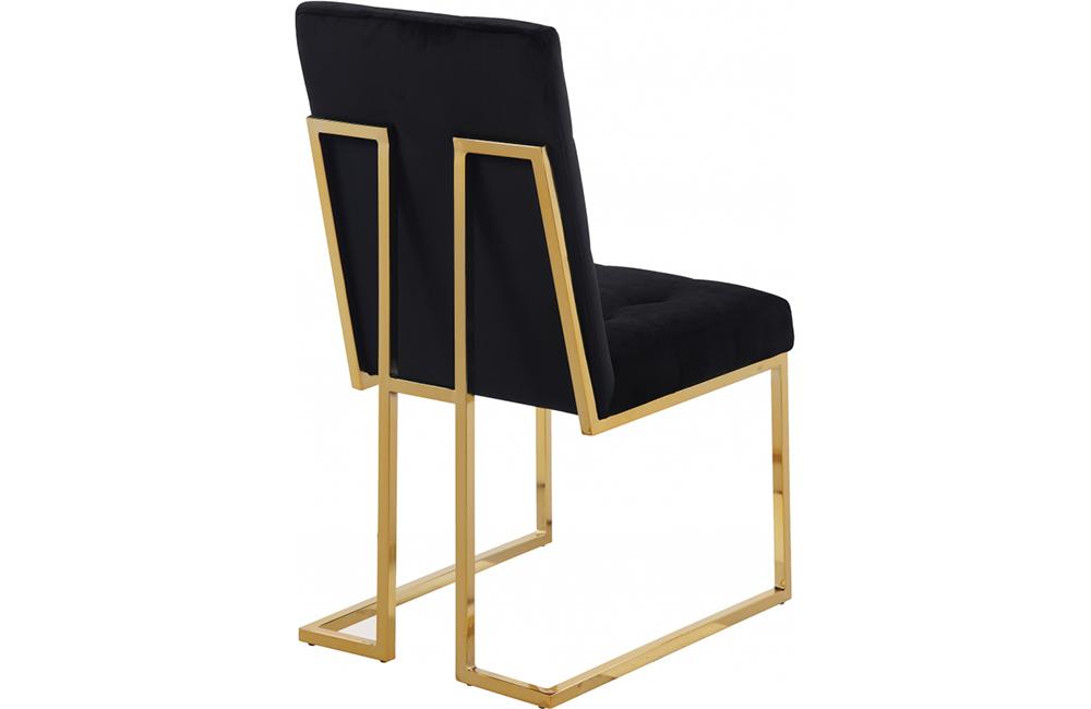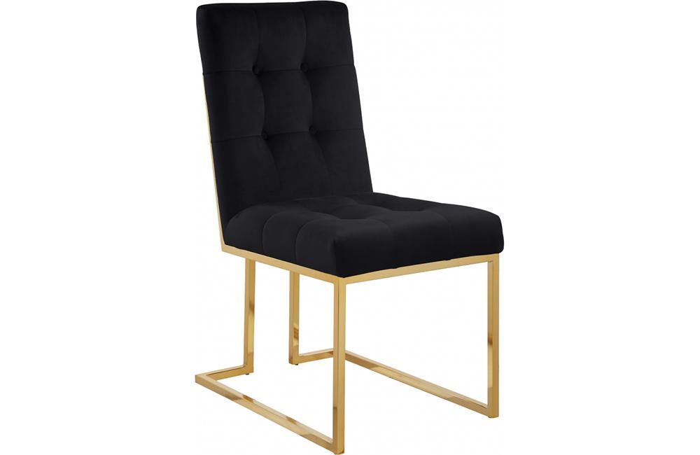 Elevate your dining experience with this Beckham black velvet dining chair. A boxy geometric shape makes this chair an uber modern addition to your space, while a base of stainless steel makes it durable and tough, so it holds up to heavy daily use. The gold tone finish on the base contrasts nicely with the black velvet upholstery used on the seat and back. Heavy tufting adds to the rich appeal of this beautiful design.