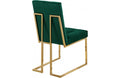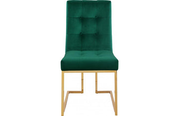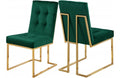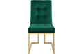 Elevate your dining experience with this Beckham Green velvet dining chair. A boxy geometric shape makes this chair an uber modern addition to your space, while a base of stainless steel makes it durable and tough, so it holds up to heavy daily use. The gold tone finish on the base contrasts nicely with the black velvet upholstery used on the seat and back. Heavy tufting adds to the rich appeal of this beautiful design.