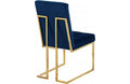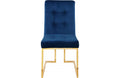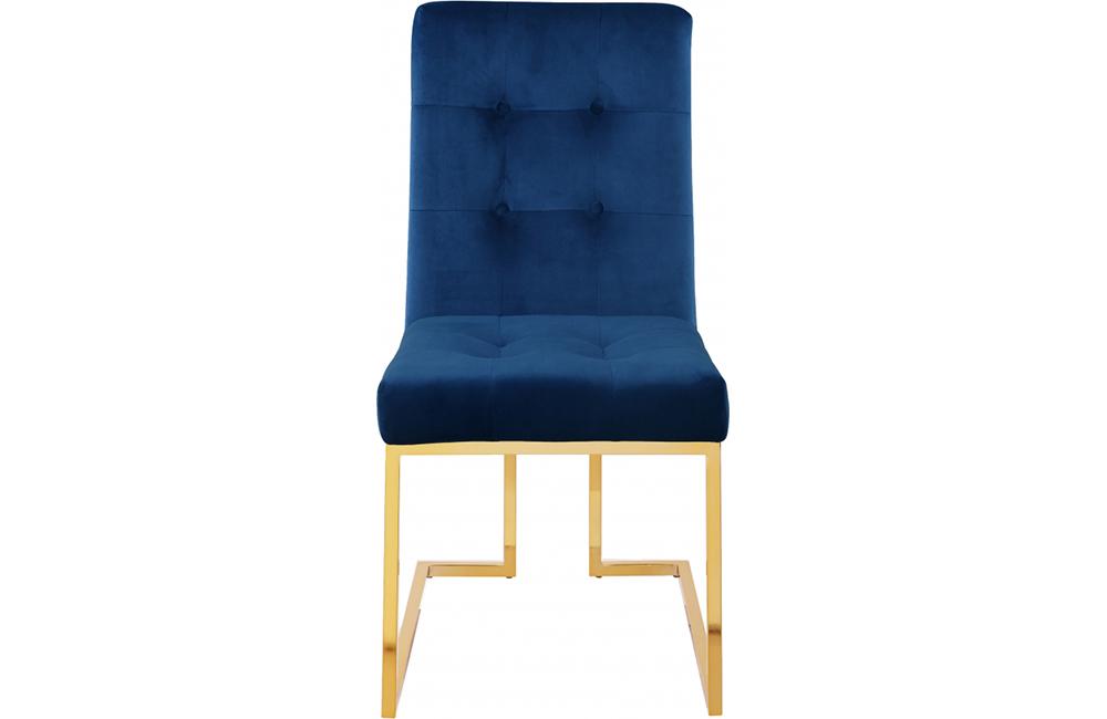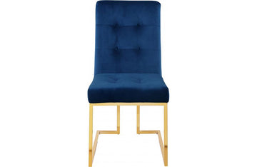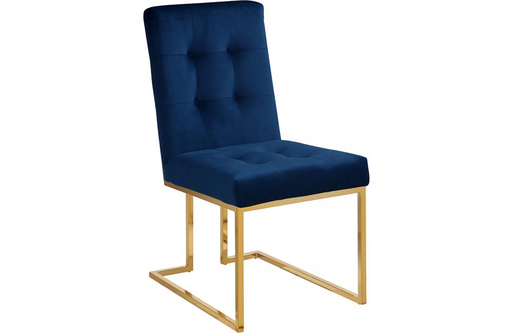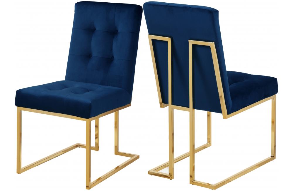Elevate your dining experience with this Beckham Navy velvet dining chair. A boxy geometric shape makes this chair an uber modern addition to your space, while a base of stainless steel makes it durable and tough, so it holds up to heavy daily use. The gold tone finish on the base contrasts nicely with the black velvet upholstery used on the seat and back. Heavy tufting adds to the rich appeal of this beautiful design.