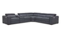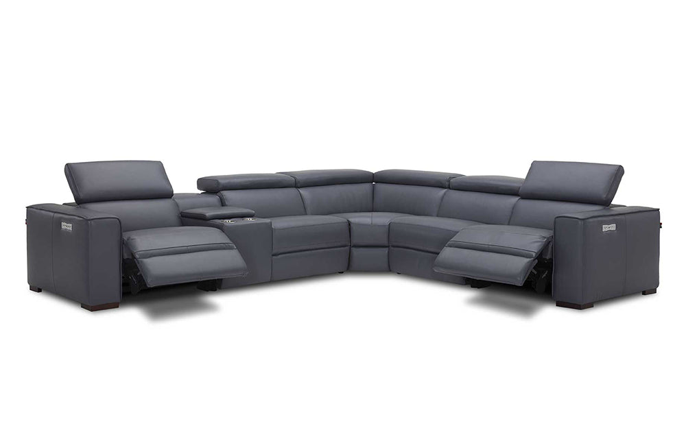 Visually Clean Lines and spacious seats set the Bellagio sectional apart from the standard. This iconic sectional is fully modular allowing you to have many options to configure it to your room's need. The Bellagio Motion Sectional features 3 powered recliners and headrests for maximum comfort. Crafted from Premium Top grain Leather all around, this 6 piece sectional features a convenient console with two cup holders plus storage, 2 end recliners, 1 arm less recliner, 1 stationary arm less & 1 plush corner cushion for ultra comfort and a solid oak frame to ensure long lasting use. Available in caramel, dark grey & silver grey.