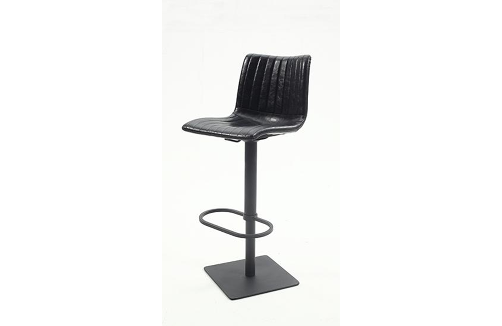 An adjustable stool with a refined look. Black perforated faux leather upholstery assures a comfortable sit, while the black powder coated frame makes it a great fit for any kitchen or bar setting.