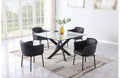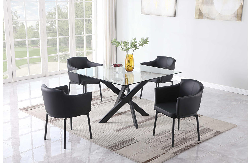- Detail Description: Dining Set w/ Square Glass Table, Crisscross Base & 4 Swivel Arm Chairs