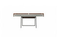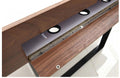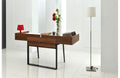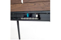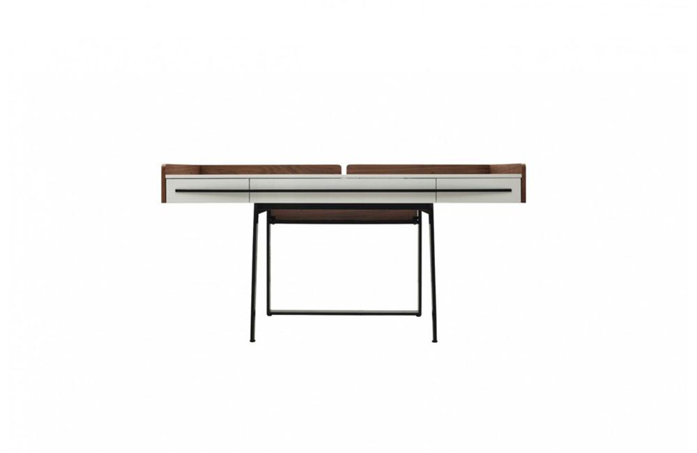 The Branton Desk is an Award Winning Design that is full of functionality without compromising aesthetics. Besides the beautiful combination of natural walnut veneer, white high gloss for that Mid Century look, it has a main back panel with push open hardware for easy access to cable management; the bottom main panel is retractable with magnets and it has enough space to hide 2 electrical power strips to hide all visible cables in use. The top surface has 2 built in compartments with channels to run cables to the power strips, two side drawers and a middle drawer with drop front door with cushion that adds comfort when you are using a keyboard and mouse.