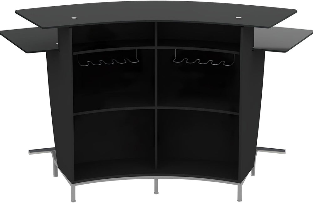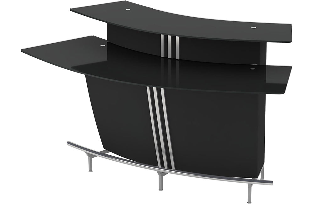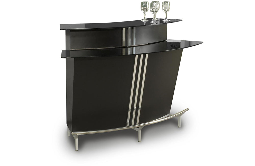 - Detail Description: Contemporary Black Glass Bar w/ Counter & Shelves