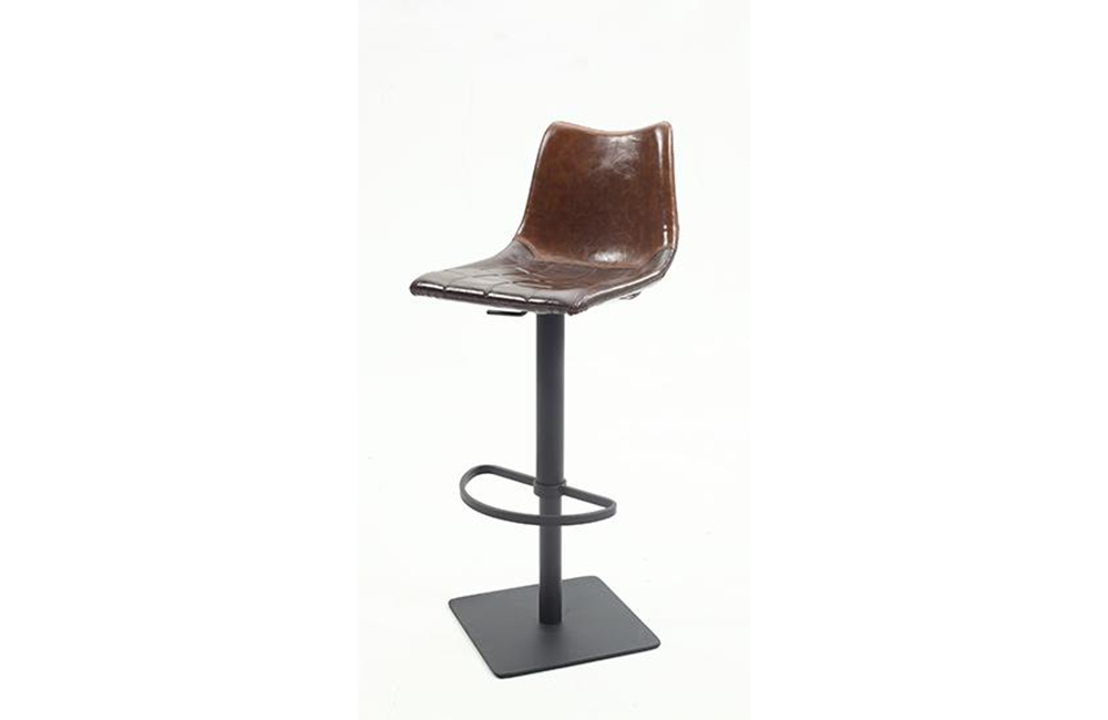 An adjustable stool with a sophisticated look. Brown PU upholstery assures a comfortable sit, while the black powder coated frame makes it a great fit for any kitchen or bar setting.