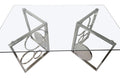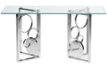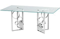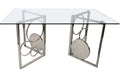 - Detail Description: Contemporary Glass Top Dining Table w/ Dual Steel Base Set