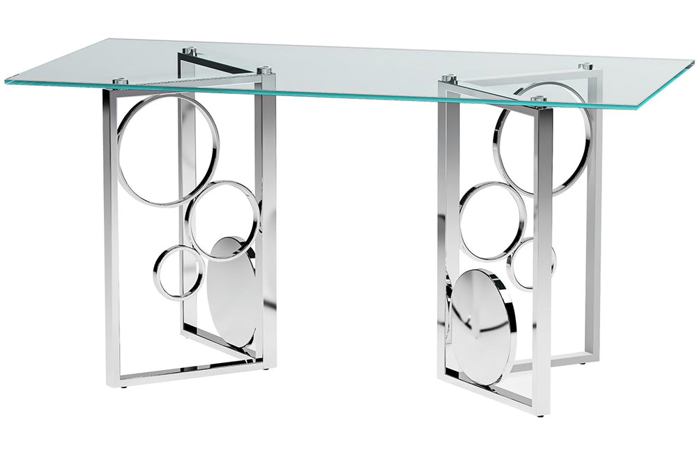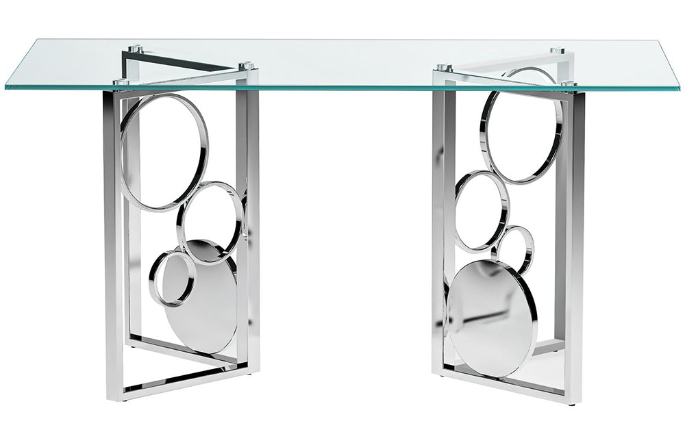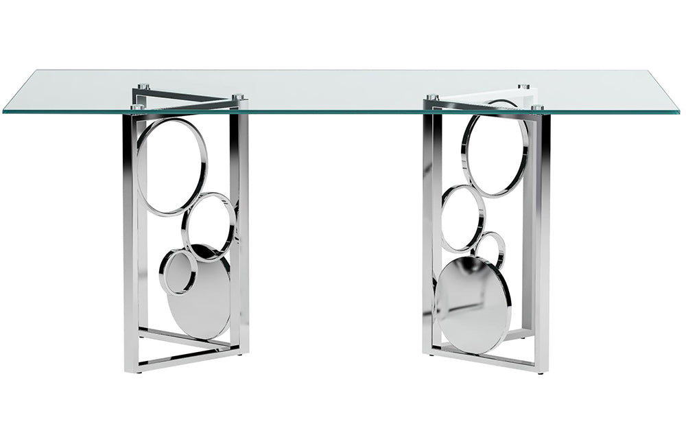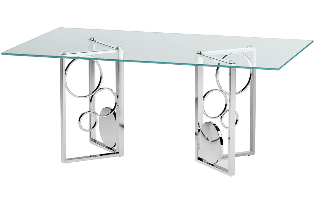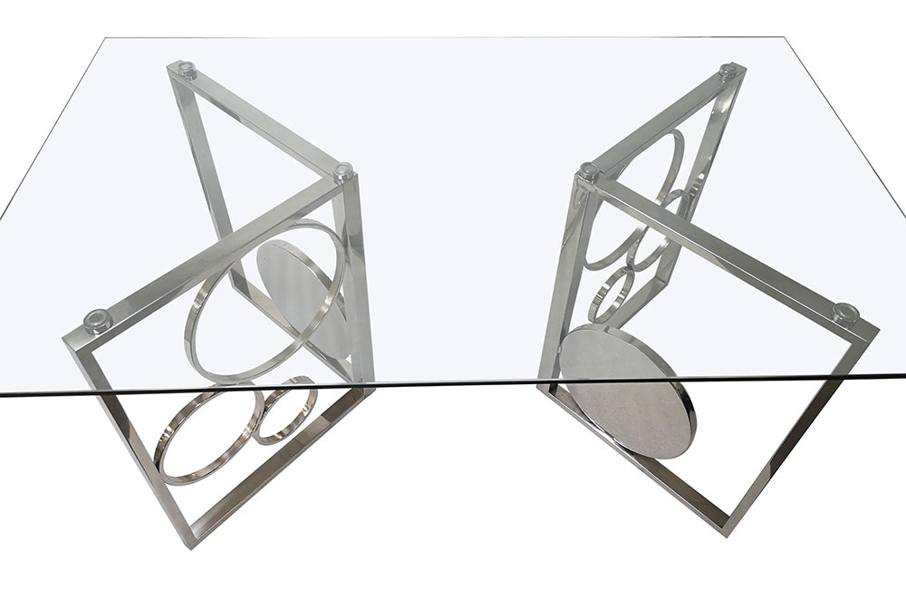 Contemporary Glass Top Dining Table w/ Dual Steel Base Set.