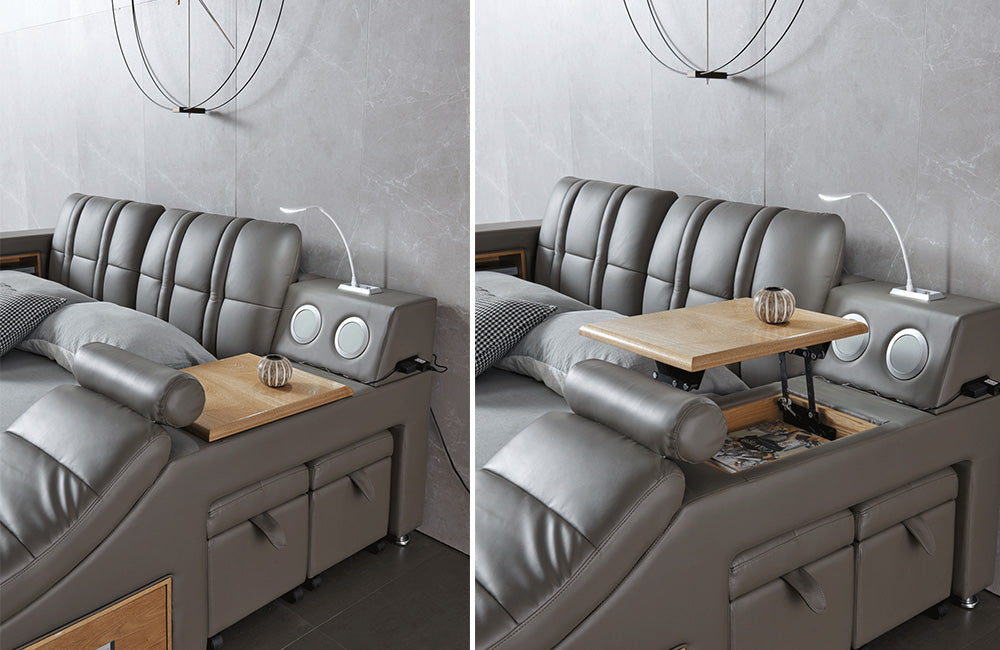 Cadillac Grey Leather Smart Bed Queen Size