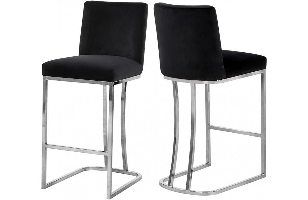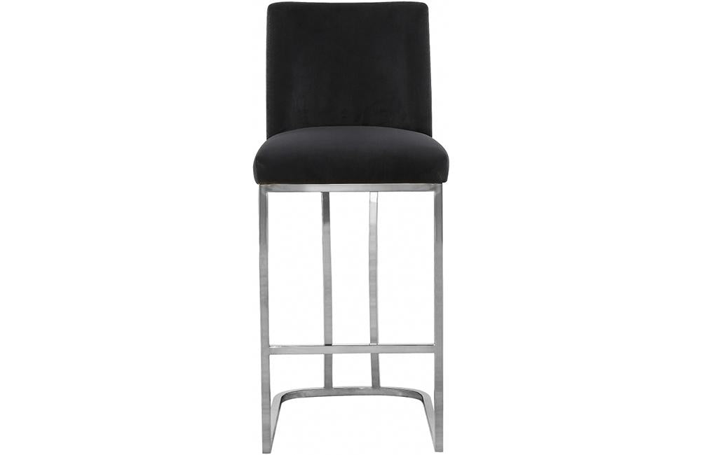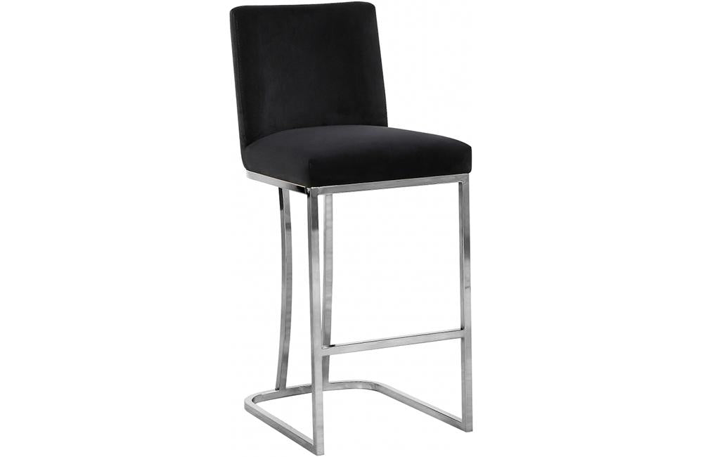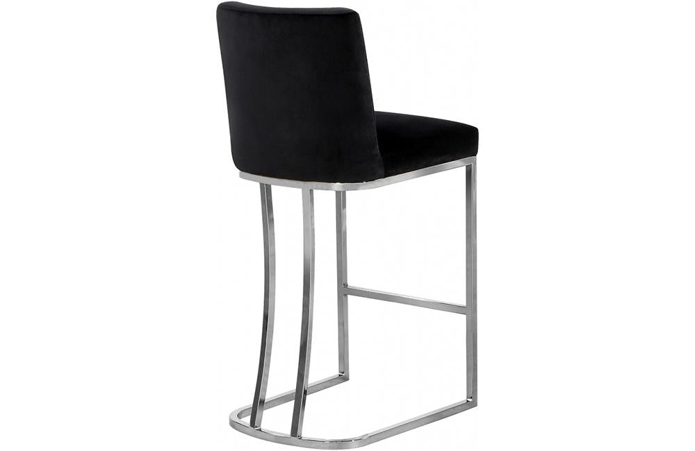 Make sure guests stay comfortable as they wine and dine from this Abena Velvet Stool. This stool has a sleek metal base finished in chrome for a chic look and is upholstered in sumptuous black velvet for a touch of glam. The upholstery is top quality and has a sleek, velvety feel against the skin for a refined and elegant presentation. The armless design facilitates conversation, and a footrail on the bottom gives you a spot to rest your feet while you dine.
