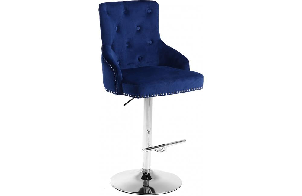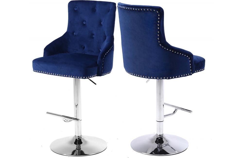 Make this Caerleon Navy Velvet Adjustable Stool everyone's new favorite seat. The high-back design supports guests in comfort, while rich velvet upholstery in a crisp black color gives the stool a svelte, modern look. Chrome nailhead trim adds another level of luxury, and the tufted design enables the cushioned back to keep its loft for maximum comfort. Add it to the bar or the kitchen counter to create a modish vibe in your room.