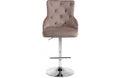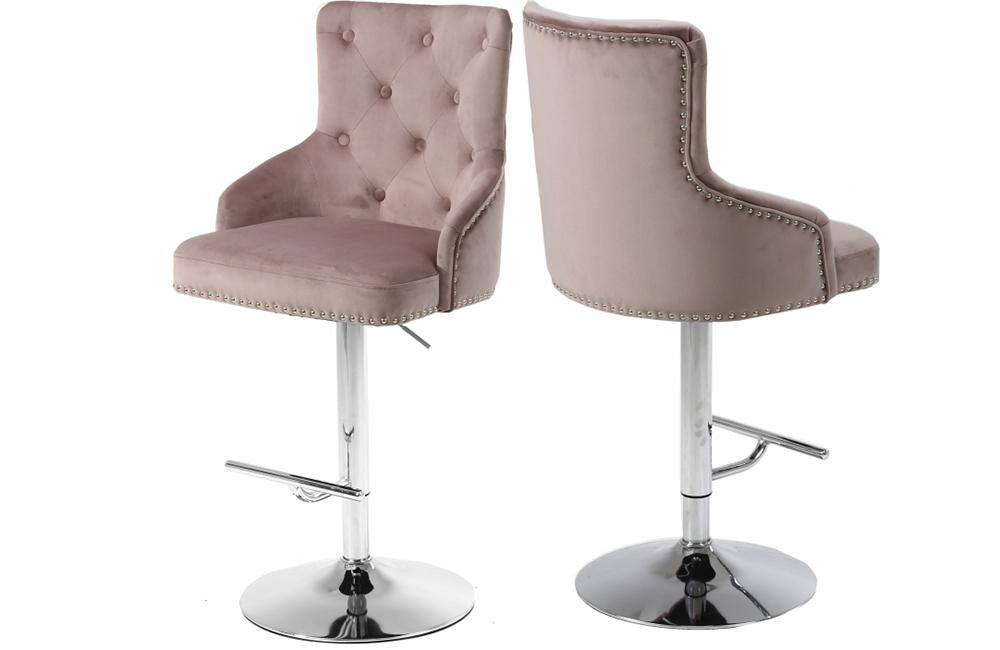 Make this Caerleon Pink Velvet Adjustable Stool everyone's new favorite seat. The high-back design supports guests in comfort, while rich velvet upholstery in a crisp black color gives the stool a svelte, modern look. Chrome nailhead trim adds another level of luxury, and the tufted design enables the cushioned back to keep its loft for maximum comfort. Add it to the bar or the kitchen counter to create a modish vibe in your room.