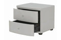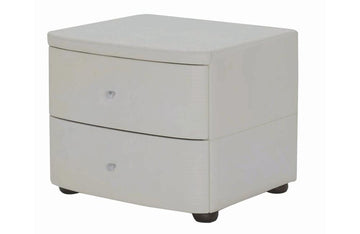 Casa Eleganza Is proud to introduce the Callia 2 Drawer Nightstand - leather wrapped nightstand in light gray leather upholstery.
