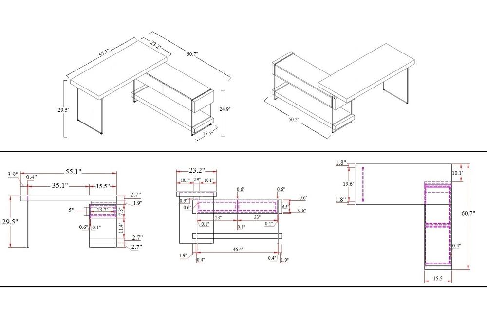 desk collection.This desk is finished in a warm walnut veneer, with thick resilient tempered glass for a sleek, chic finish.The design permits for one to swivel the desk top 360 degrees for convenience.