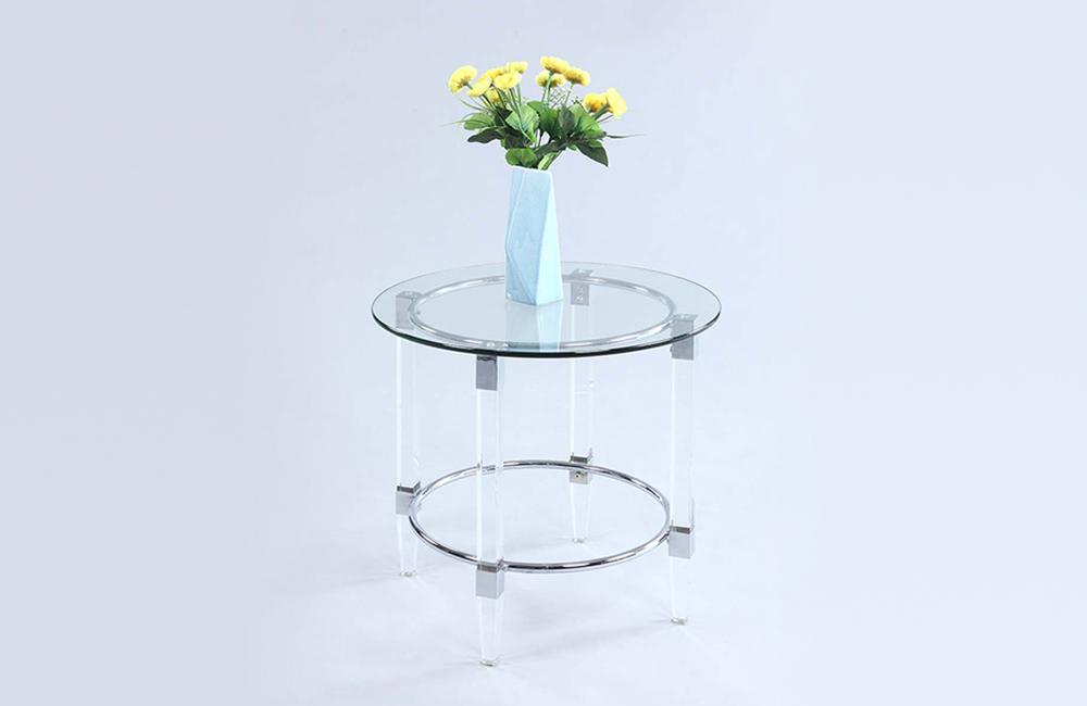 This splendid, voguish modern lamp table would make a great addition to any contemporary styled living room. The round, tempered glass top infuses the piece with an elegant sensibility, which the metal acrylic legs support and sustain to ensure that your living room environment can really come to life.