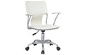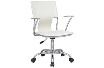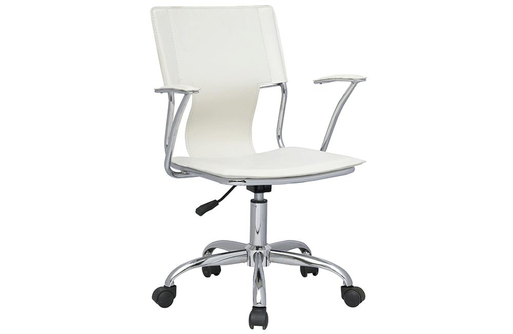 Modern pneumatic gas lift adjustable swivel computer chair. 5 Star chrome base/footrest. Chrome arms. Available in Black PVC.