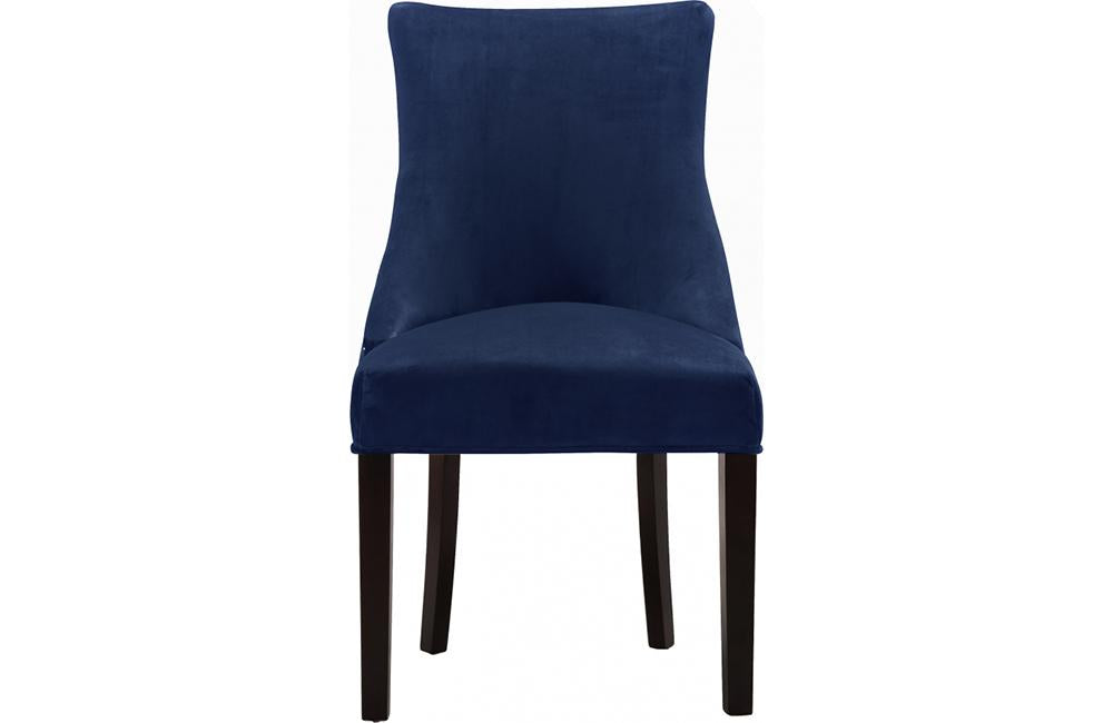Dine in luxurious style with the Caterina velvet dining chair. Featuring a curved high back, plush cushioned seat and deep tufted velvet upholstery studded with chrome nailheads, this dining chair is sure to take your dining experience to a whole new level. Espresso wood legs provide sturdy support and complement the stunning upholstery for a sleek, contemporary design.